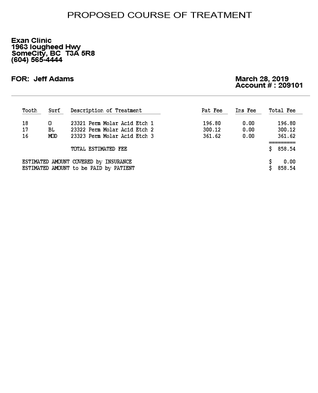 The Treatment Flow dialogue box will appear at this point. You can print an estimate or submit the claim to EDI to get an estimate of coverage.