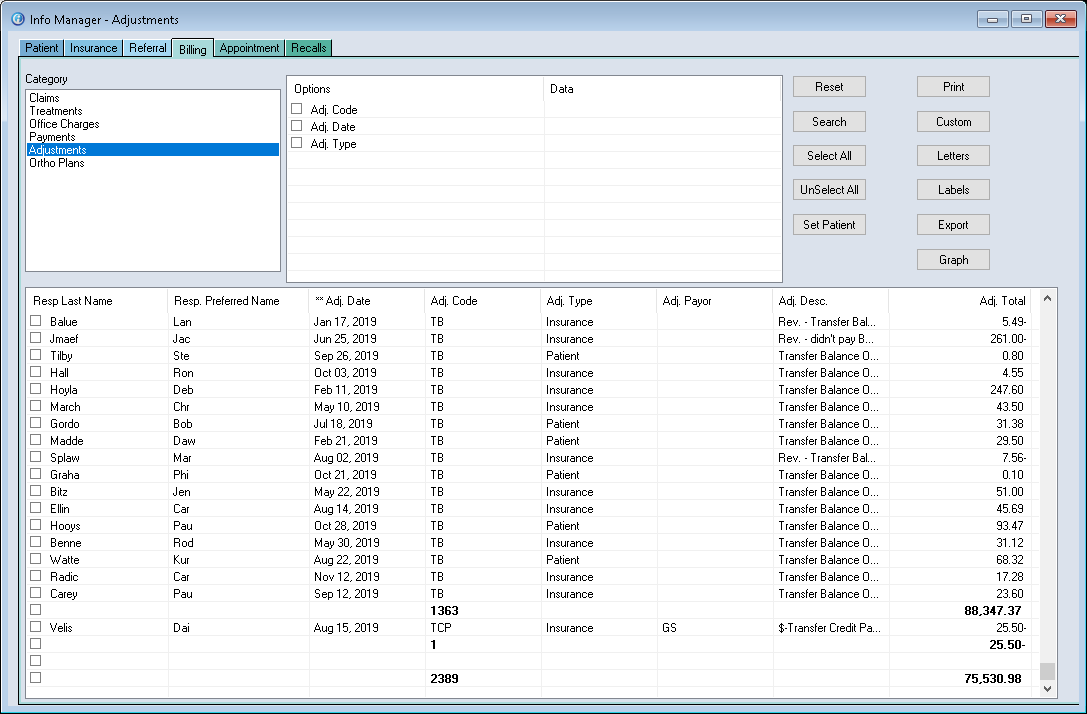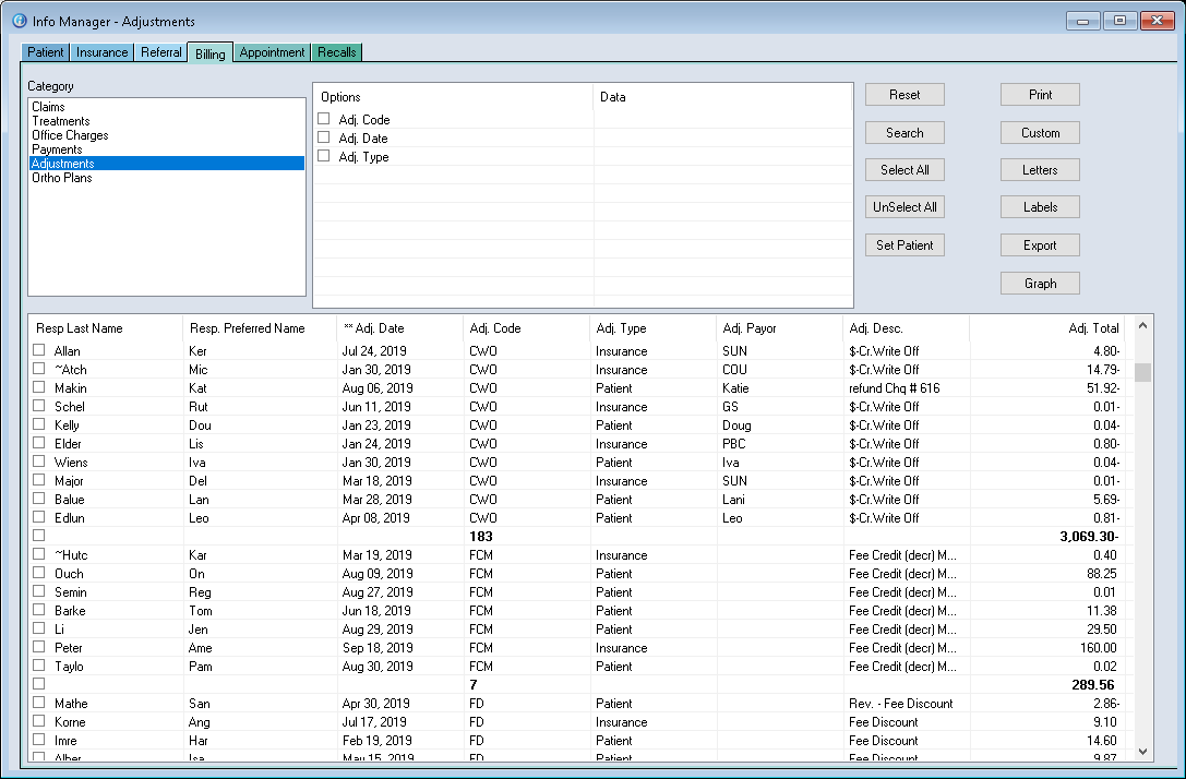We will need to build this report under the Billing Tab again, but this time we will use the Adjustments Category.