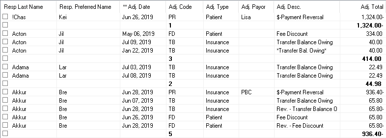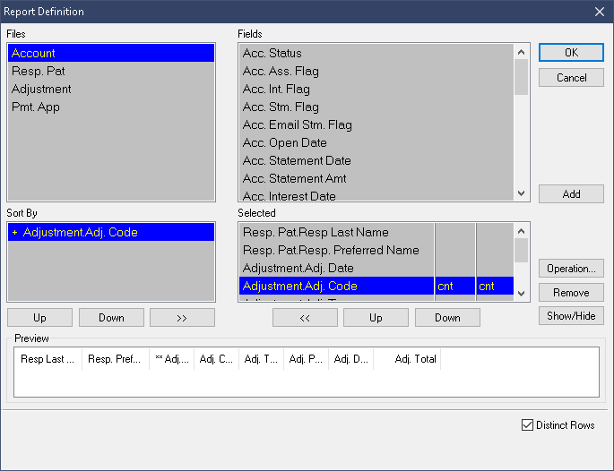 We want to report on all the different types of Adjustments issued, tallying each type using the Detail Operation.