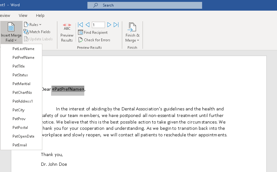 Our final lesson will focus on the Merge Field functionality. By utilizing all of the available tools at hand, we can personalize our letters for each patient.