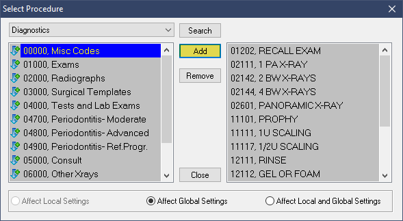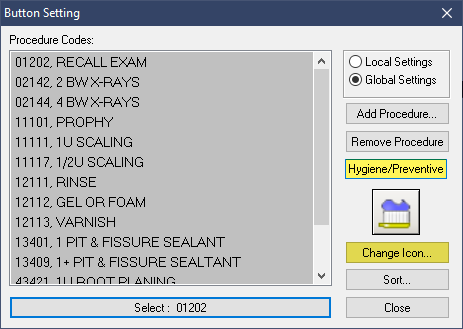 The Quick Buttons can be customized to display the procedure codes that are most frequently used in the office. The Quick Button name and icon can also be customized if the current categories do not suit the procedures most frequently used within the office.