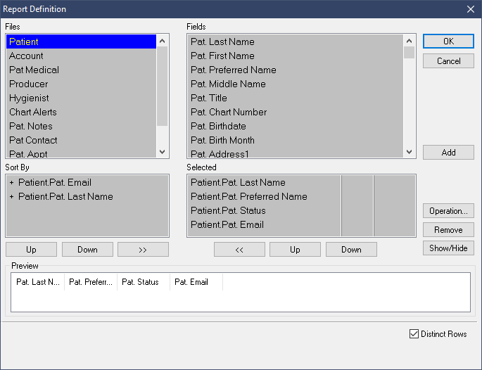 Editing the Info Manager reports is tricky at first but it becomes easier the more practice you’ve had. To edit the report, right click on the white grid space where the results populate and choose Edit Report. This will present the Report Definition box.